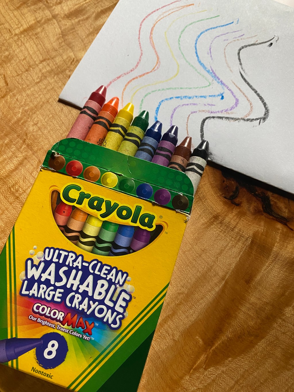 The first of the best methods used in my research was being able to explore the variety available in my local stores and asking a sales associate. From first looks seeing the shelves full of different varieties of crayons and amounts sold per box was exciting. Some boxes came with only a few, a basic rainbow of eight large crayons. The number of crayons went all the way to 152 crayons! The box even had a built-in sharpener. The type of crayon varieties is quite significant, they offer glitter, pearl, skin tone, neon, metallic and so many more it was hard to keep track. The second research approach I found to be useful was experimenting manipulation of the crayon. Blending the melted colored wax, freezing it, and just trying to use it like I would other mediums. The third best method was reading the box and labels on the crayons. This method provided me with cleaning instructions and the power of the product which can be important in the classroom and to any parent in charge of laundry. I also learned that heaven forbid my daughter, who is only one, ate the crayon, Crayola Crayons are nontoxic allowing me to give her more freedom with the material.